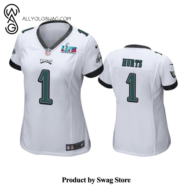 Some details about our product [Top-selling] Jalen Hurts 1 Philadelphia Eagles Super Bowl LVII White Game 3D Unisex Jersey – Women