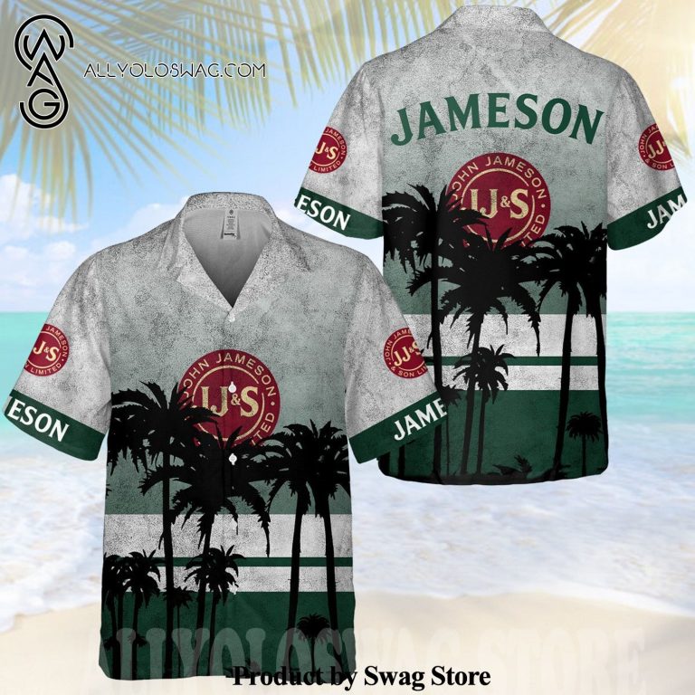 Hawaiian Shirt [Top-selling] Jameson Irish Whiskey Palm Tree All Over Print Aloha Summer Beach Hawaiian Shirt – White Green
