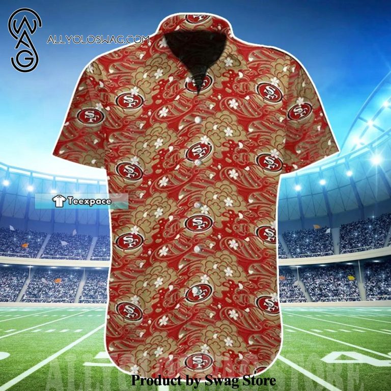 [Top-selling] Japanese Waves San Francisco 49ers Summer Set Hawaiian Shirt San Francisco 49ers Gift For Him was hand-tailored in the early days of fashion. This might happen in the comfort of one’s own home or at a custom tailor’s business. These stores immediately sprang up all across the islands, especially in plantation towns and Honolulu. Newly accessible fabrics from throughout the world were sold at dry goods stores, including printed silk from Japan, raw silk, batik, and rayon from the United States mainland, and cotton cloth for kimonos and yukatas.Hawaiian history had long been shaped by Asian immigrants, and apparel designs reflected this. Short- and long-sleeved shirts, as well as women’s skirts, were created using pre-printed textiles from China and Japan and were based on Asian clothing styles. These bright blouses and dresses were the forerunners of today’s Aloha attire. On the islands, we say “ono” to describe something that is pleasantly cool.