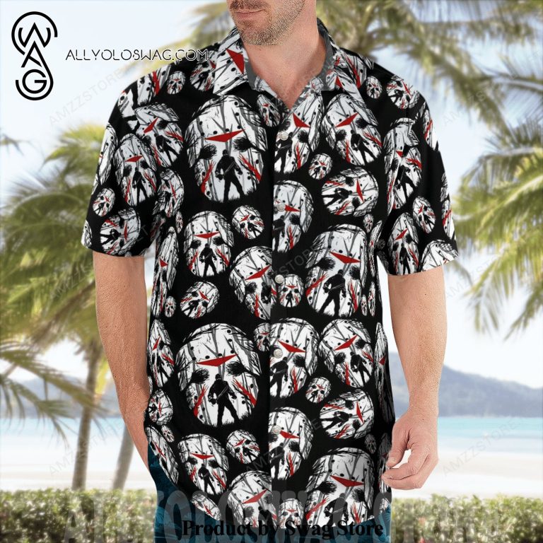 [Top-selling] Jason Voorhees Face Mask All Over Print Hawaiian Shirt – Black White