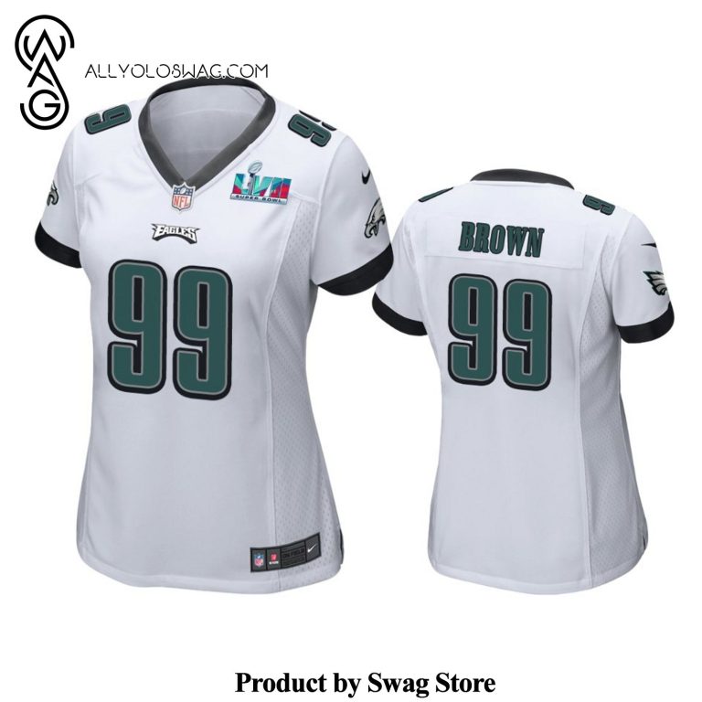 Some details about our product [Top-selling] Jerome Brown 99 Philadelphia Eagles Super Bowl LVII White Game 3D Unisex Jersey – Women
