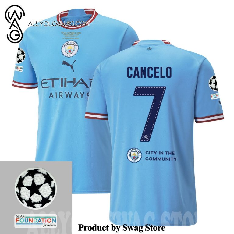 Some details about our product [Top-selling] João Cancelo 7 Manchester City UEFA 2023 Final Match Details Patch Badge – Home 3D Unisex Jersey