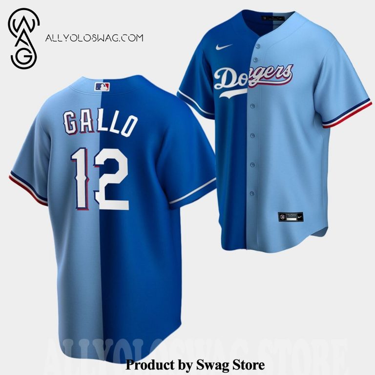 Some details about our product [Top-selling] Joey Gallo 12 Dodgers x Rangers Blue Split Edition 3D Unisex Jersey