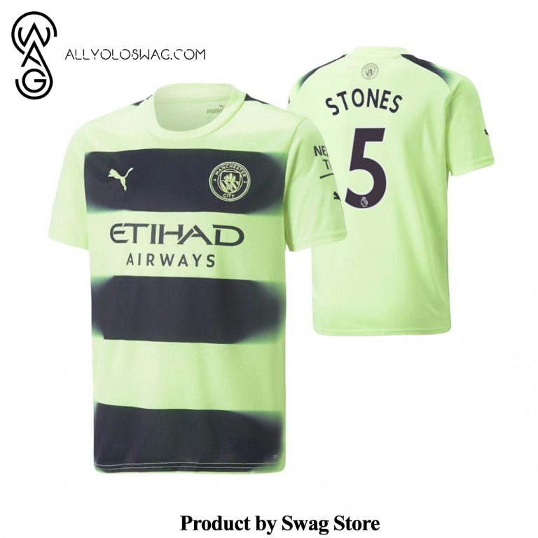 Some details about our product [Top-selling] John Stones 5 Manchester City 2022-23 Third Youth 3D Unisex Jersey – Neon Green