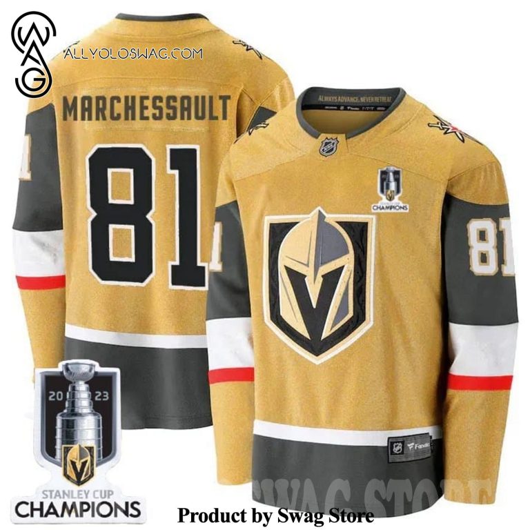 NOTE: [Top-selling] Jonathan Marchessault 81 Vegas Golden Knights 2023 Stanley Cup Champions Patch Breakaway Home 3D Unisex Jersey – Gold