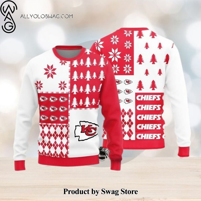 NOTE: [Top-selling] Kansas City Chiefs Christmas Pine Trees Pattern Knitted Ugly Christmas Sweater AOP Gift For Men And Women