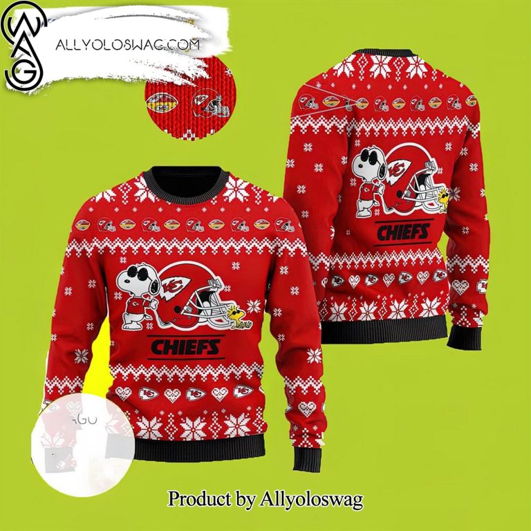 Some details about our [Top-selling] Kansas City Chiefs Cute The Snoopy Show Football Helmet 3D Ugly Christmas Wool Knitted Sweater
