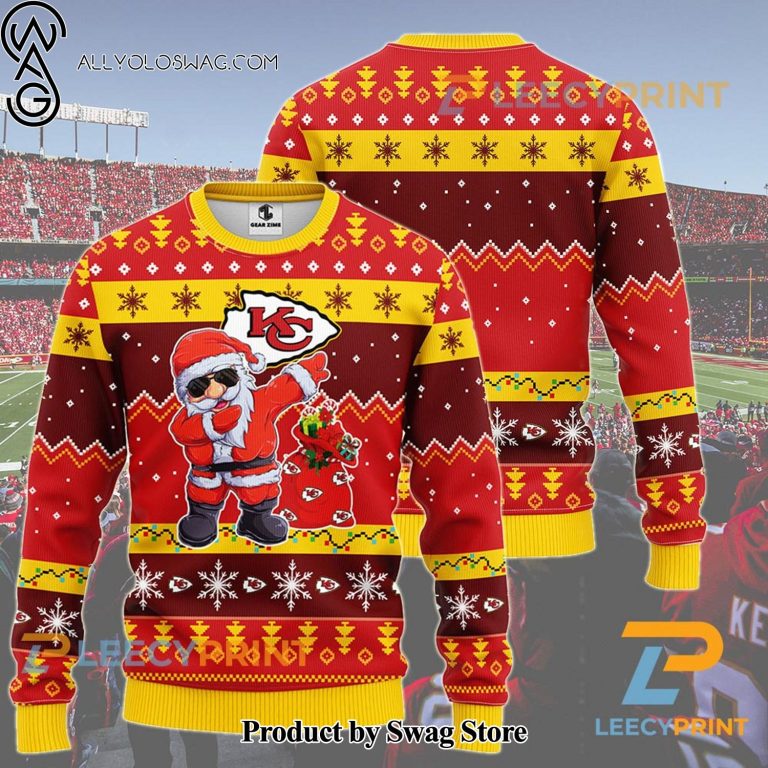 NOTE: [Top-selling] Kansas City Chiefs Dabbing Santa Claus Christmas Ugly Christmas Sweater