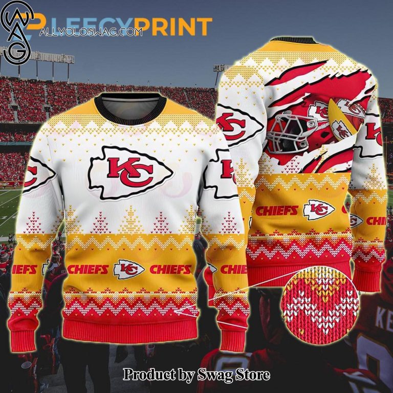 Some details about our [Top-selling] Kansas City Chiefs Football Helmet Yellow Ugly Christmas Sweater
