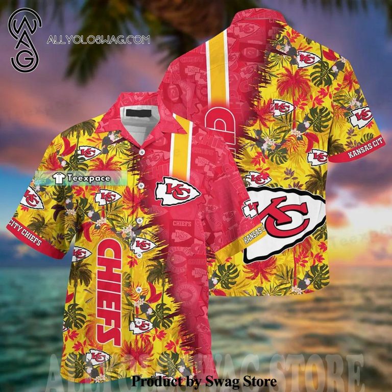 [Top-selling] Kansas City Chiefs Gold Red Floral Summer Set Hawaiian Shirt Kansas City Chiefs Gift Ideas was hand-tailored in the early days of fashion. This might happen in the comfort of one’s own home or at a custom tailor’s business. These stores immediately sprang up all across the islands, especially in plantation towns and Honolulu. Newly accessible fabrics from throughout the world were sold at dry goods stores, including printed silk from Japan, raw silk, batik, and rayon from the United States mainland, and cotton cloth for kimonos and yukatas.Hawaiian history had long been shaped by Asian immigrants, and apparel designs reflected this. Short- and long-sleeved shirts, as well as women’s skirts, were created using pre-printed textiles from China and Japan and were based on Asian clothing styles. These bright blouses and dresses were the forerunners of today’s Aloha attire. On the islands, we say “ono” to describe something that is pleasantly cool.