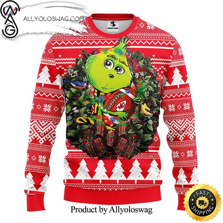NOTE: [Top-selling] Kansas City Chiefs Grinch Hug Xmas Day Show Your Team Spirit Knitting Pattern 3D Print Ugly Sweater