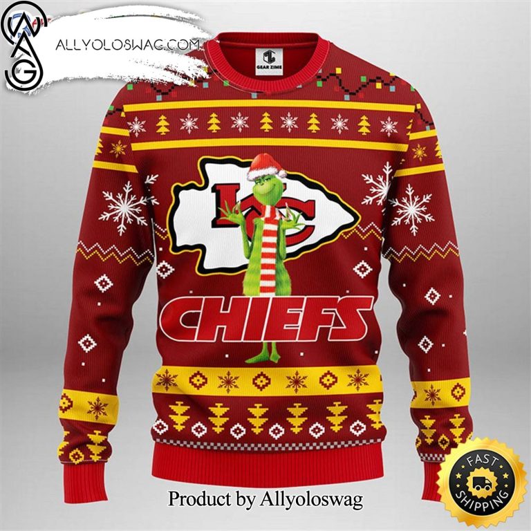 NOTE: [Top-selling] Kansas City Chiefs Grinch Show Your Team Spirit Ugly Xmas Wool Knitted Sweater