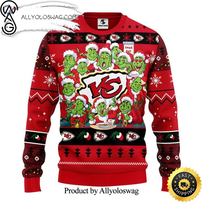 NOTE: [Top-selling] Kansas City Chiefs Print 12 Grinch Xmas Day Show Your Team Spirit Ugly Christmas Wool Knitted Sweater