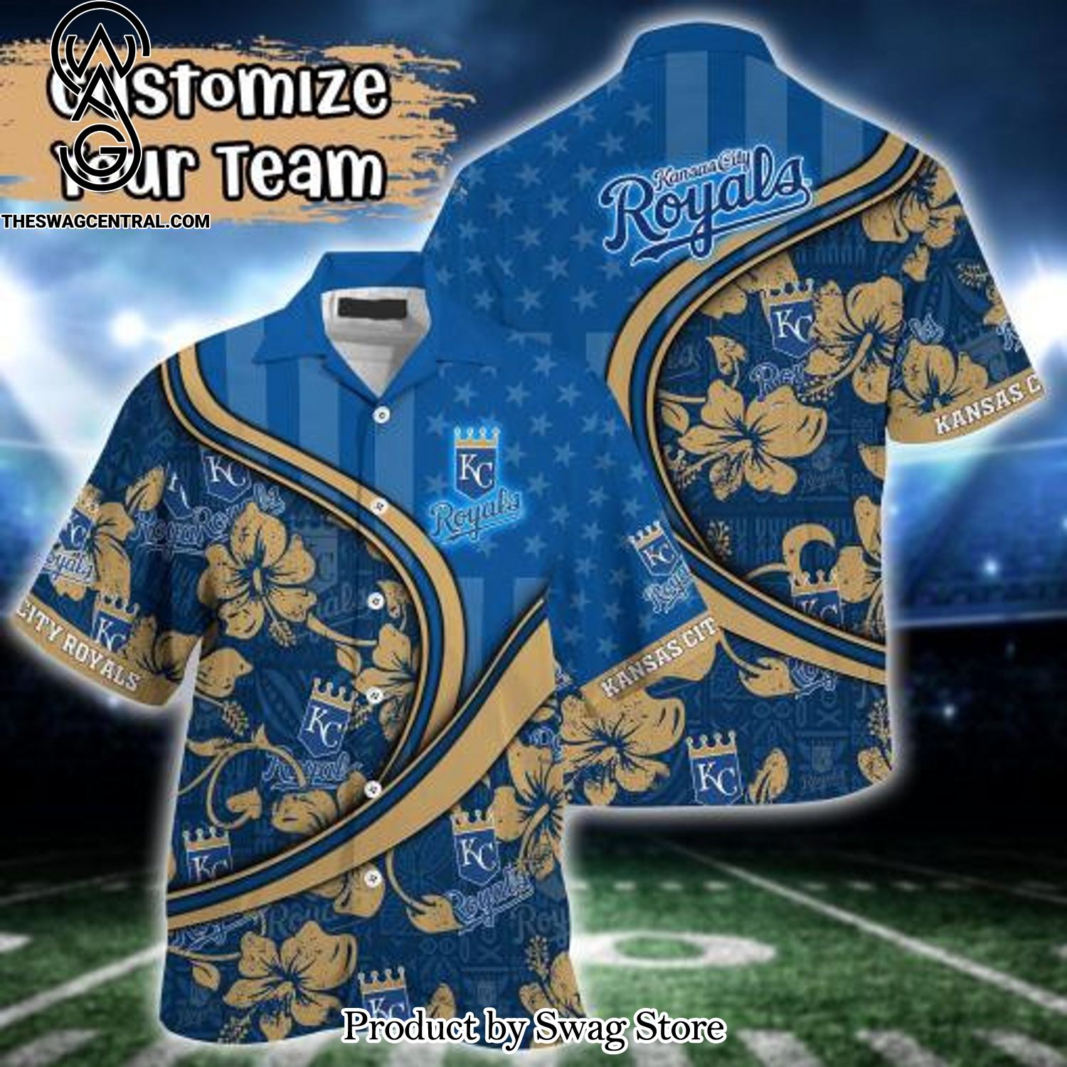 NOTE: [Top-selling] Kansas City Royals MLB US Flag Flower Custom Summer Football Combo Full Printing Hawaiian Shirt