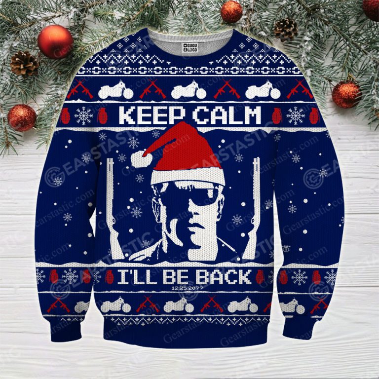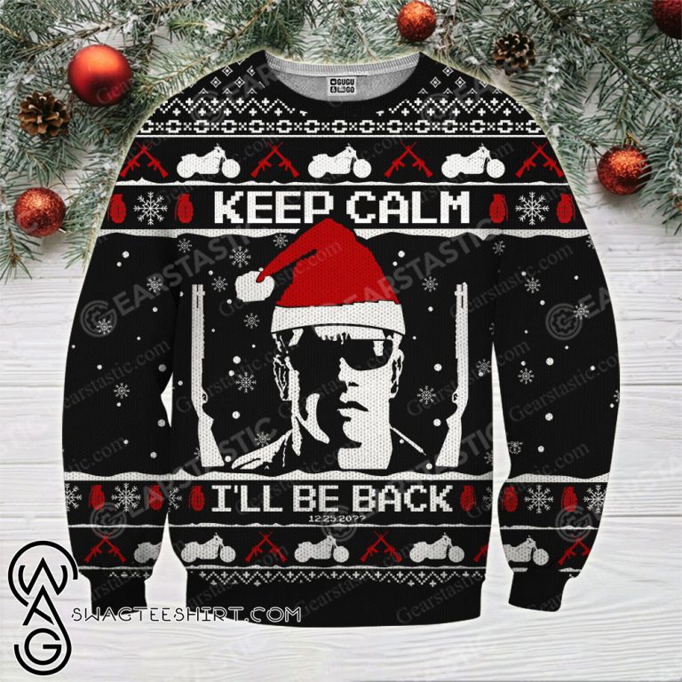 8. After winter, store sweaters – [Top-selling] Keep calm i’ll be back the terminator ugly christmas sweater