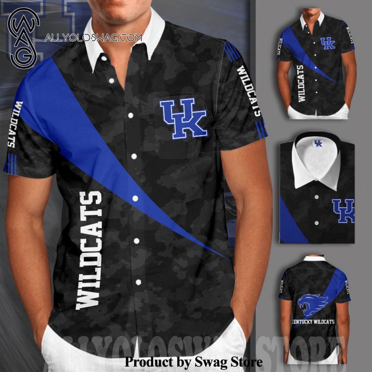 Some details about our product [Top-selling] Kentucky Wildcats All Over Print Camo Short Sleeve Dress Shirt Hawaiian Summer Aloha Beach Shirt – Black