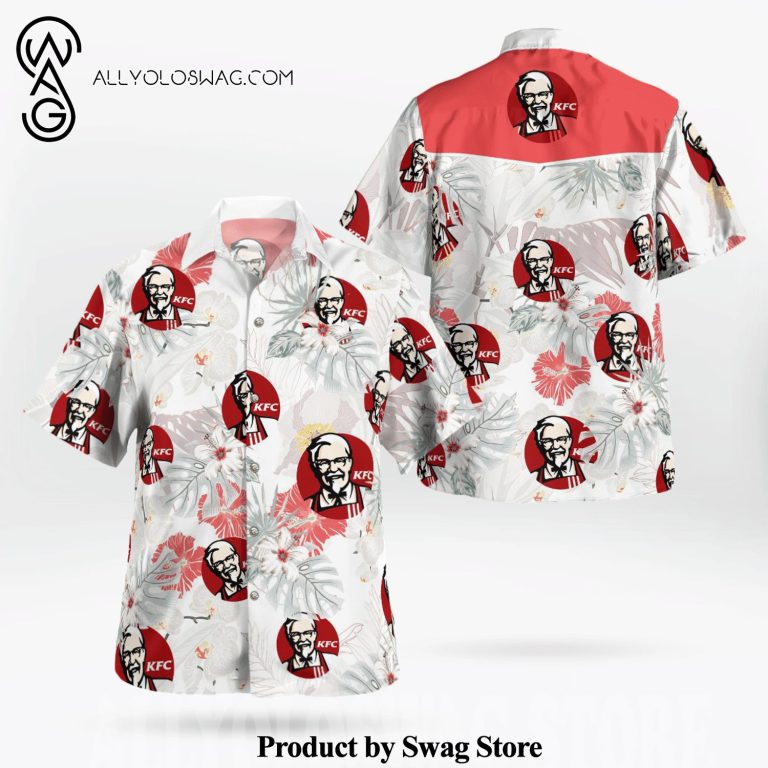 [Top-selling] KFC Fast Food Logo All Over Print Flowery Aloha Summer Beach Hawaiian Shirt – White