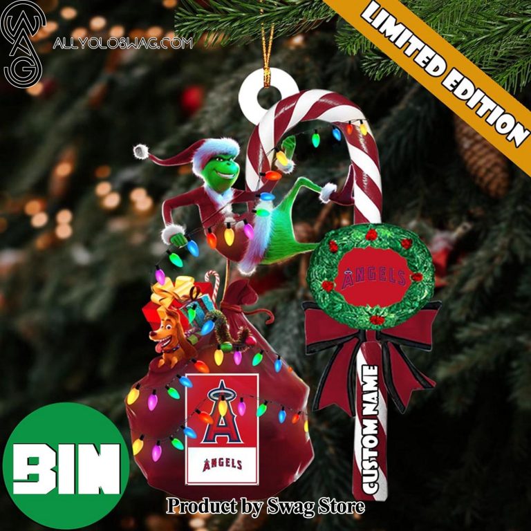 NOTE: [Top-selling] Los Angeles Angels MLB Custom Name Grinch Candy Cane Christmas Tree Ornament
