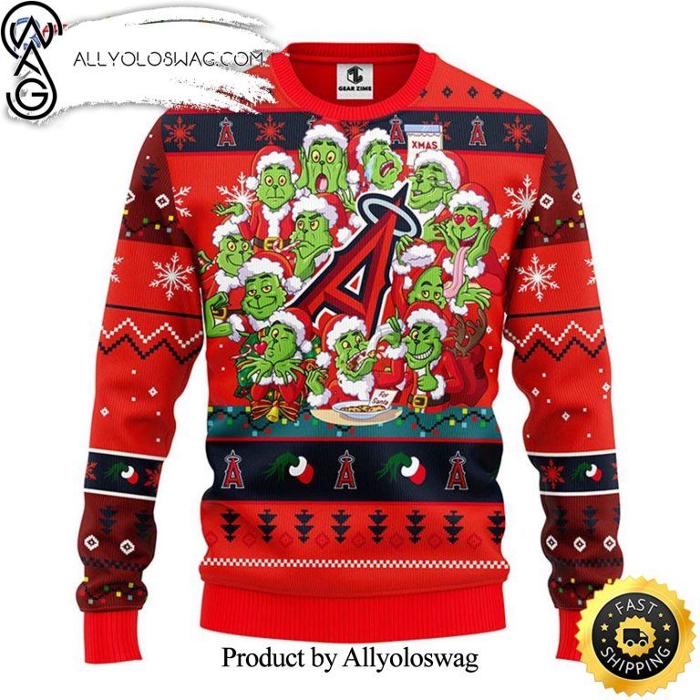 NOTE: [Top-selling] Los Angeles Angels Print 12 Grinch Xmas Day Show Your Team Spirit Knitting Pattern Ugly Christmas Sweater