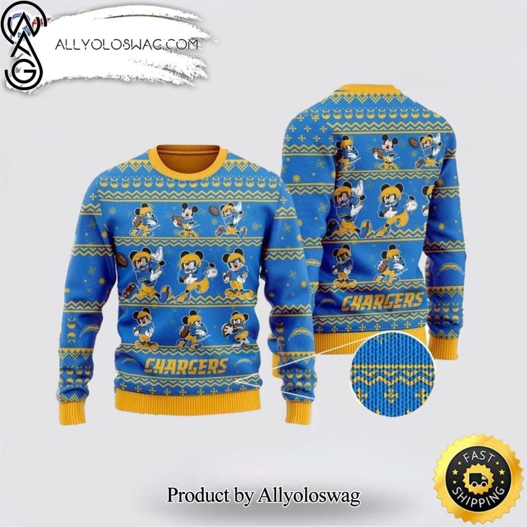 Some details about our [Top-selling] Los Angeles Chargers Captain Mickey Mouse Perfect Gift For Football Fans Knitting Pattern 3D Print Ugly Sweater