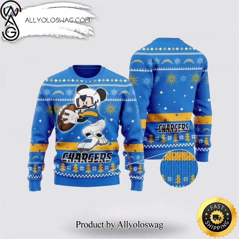 NOTE: [Top-selling] Los Angeles Chargers Mickey Mouse The Decisive Throw Ugly Christmas Sweater
