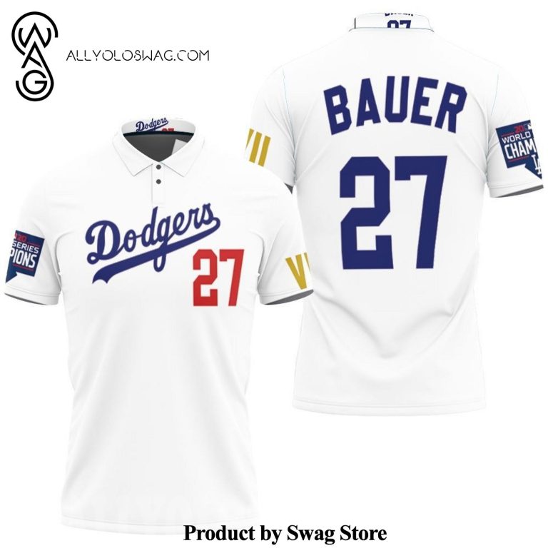 Product description information – [Top-selling] Los Angeles Dodgers Bauer 27 Championship Golden Edition White Jersey Inspired Style All Over Print Polo Shirt