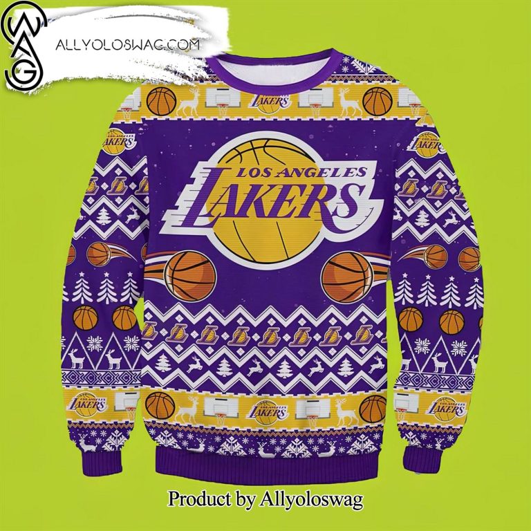NOTE: [Top-selling] Los Angeles Lakers Footballs Ugly Xmas Wool Knitted Sweater