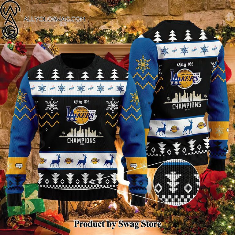 Some details about our [Top-selling] Los Angeles Lakers Of Champions Knitting Pattern Ugly Christmas Holiday Sweater