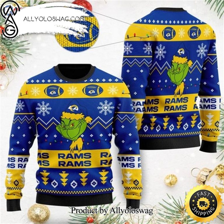 NOTE: [Top-selling] Los Angeles Rams American NFL Football Team Logo Cute Grinch Christmas Ugly Wool Knitted Sweater
