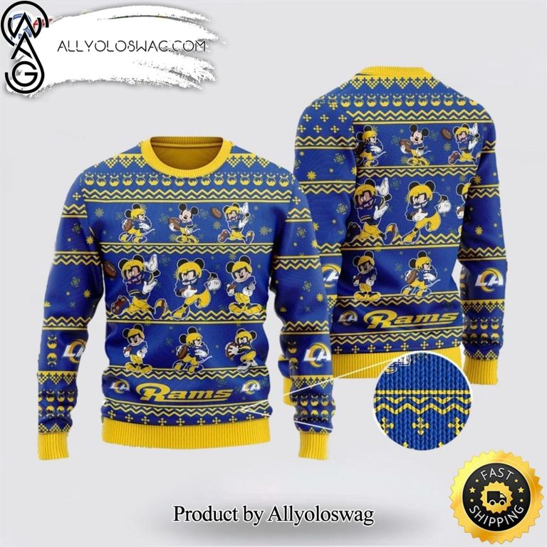 Some details about our [Top-selling] Los Angeles Rams Captain Mickey Mouse Perfect Gift For Football Fans Ugly Christmas Wool Knitted Sweater
