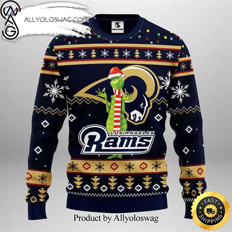 NOTE: [Top-selling] Los Angeles Rams Grinch Show Your Team Spirit Knitting Pattern 3D Print Ugly Sweater