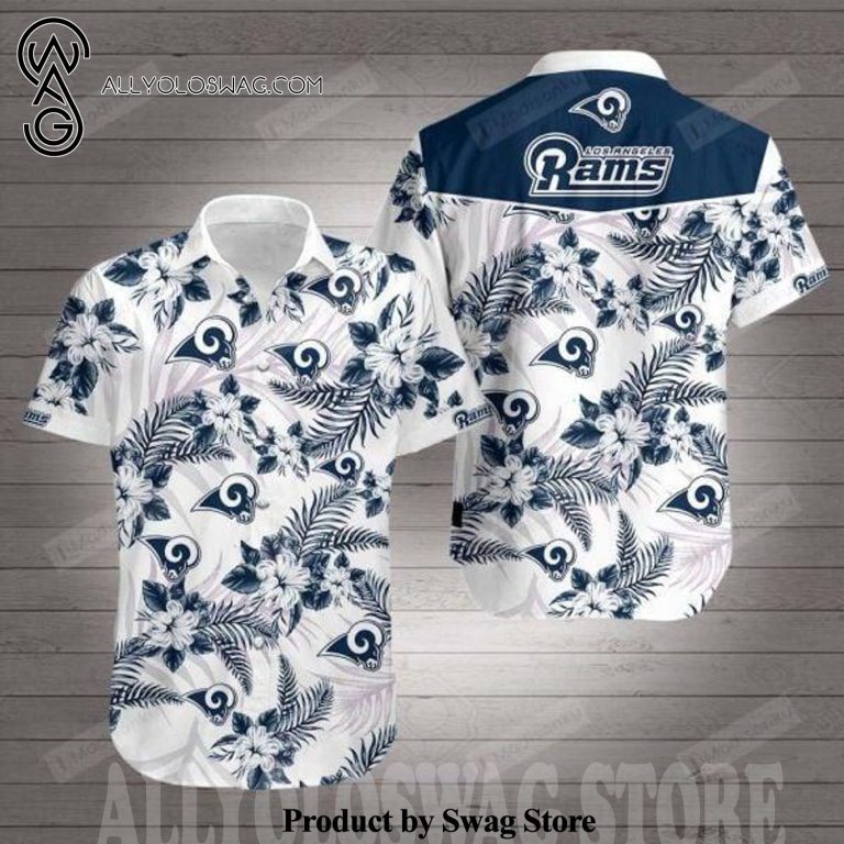 [Top-selling] Los Angeles Rams Hot Outfit All Over Print Hawaiian Shirt was hand-tailored in the early days of fashion. This might happen in the comfort of one’s own home or at a custom tailor’s business. These stores immediately sprang up all across the islands, especially in plantation towns and Honolulu. Newly accessible fabrics from throughout the world were sold at dry goods stores, including printed silk from Japan, raw silk, batik, and rayon from the United States mainland, and cotton cloth for kimonos and yukatas.Hawaiian history had long been shaped by Asian immigrants, and apparel designs reflected this. Short- and long-sleeved shirts, as well as women’s skirts, were created using pre-printed textiles from China and Japan and were based on Asian clothing styles. These bright blouses and dresses were the forerunners of today’s Aloha attire. On the islands, we say “ono” to describe something that is pleasantly cool.
