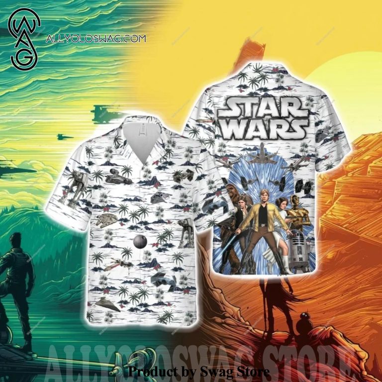 Hawaiian Shirt [Top-selling] Luke Skywalker Princess Leia Han Solo Chewbacca R2-D2 C-3PO Star Wars All Over Print Hawaiian Shirt – White