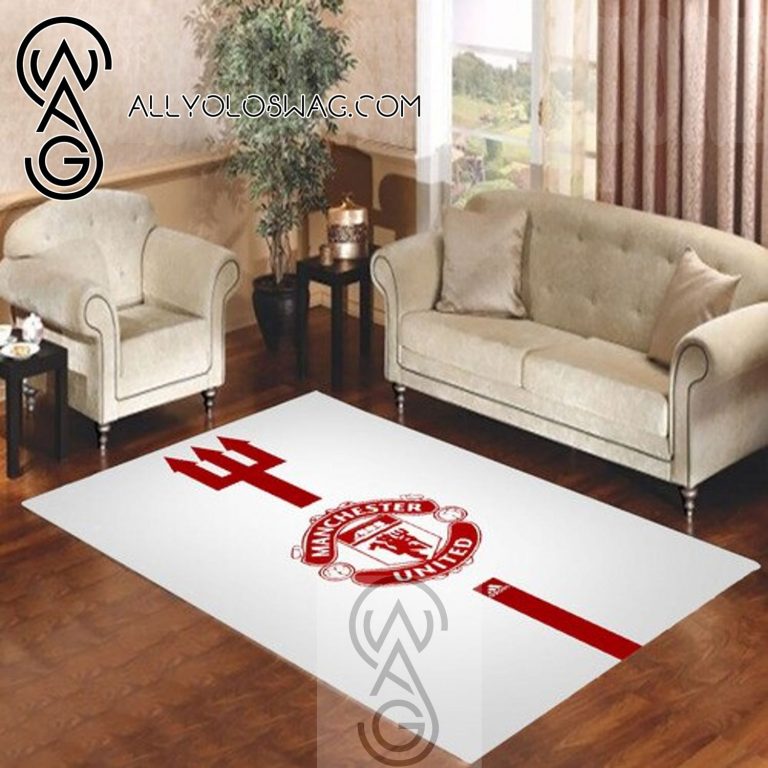 Heavy furniture should not be placed on area rugs as it may dent and crush the fibers. However, furniture coasters will aid in preventing [Top-selling] Manchester United FC white Living Room Carpet Rugs depression.