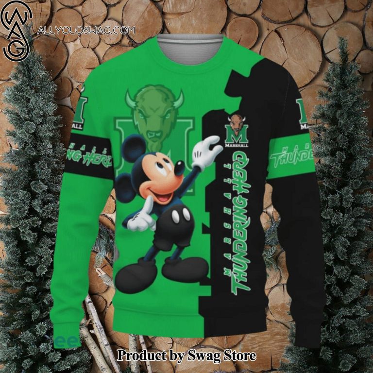 NOTE: [Top-selling] Marshall Thundering Herd Mickey Mouse Champions Football Wool Holiday Sweater