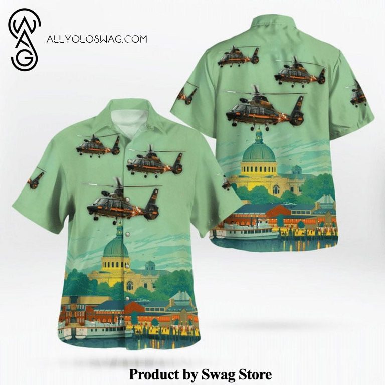 Hawaiian Shirt [Top-selling] Maryl And State Police Aerospatiale SA-365N-1 Dauphin 2 All Over Print Flowery Aloha Summer Beach Hawaiian Shirt – Green