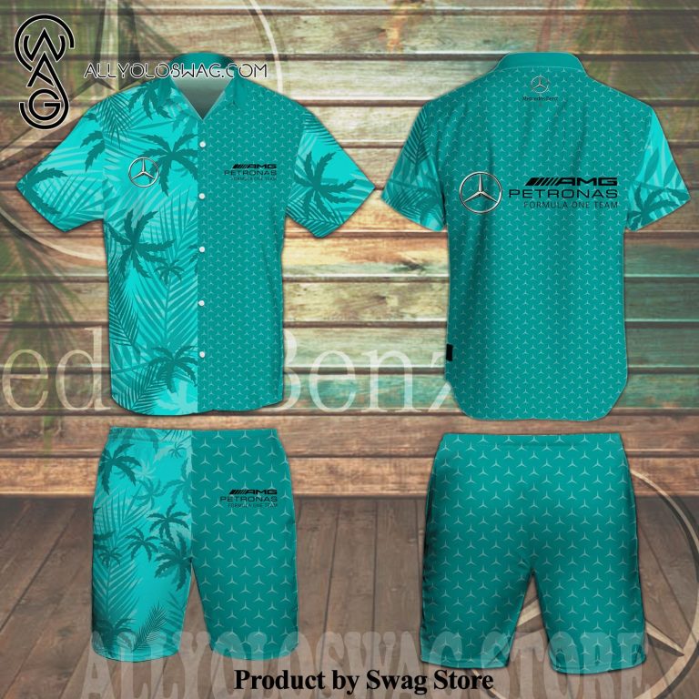Some details about our product [Top-selling] Mercedes AMG Petronas F1 Palm Leaves All Over Print Aloha Summer Beach Hawaiian Shirt And Beach Shorts – Turquoise
