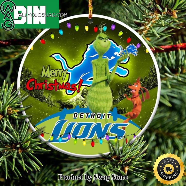 [Top-selling] Merry Christmas Detroit Lions NFL Funny Grinch Christmas Tree Ornament