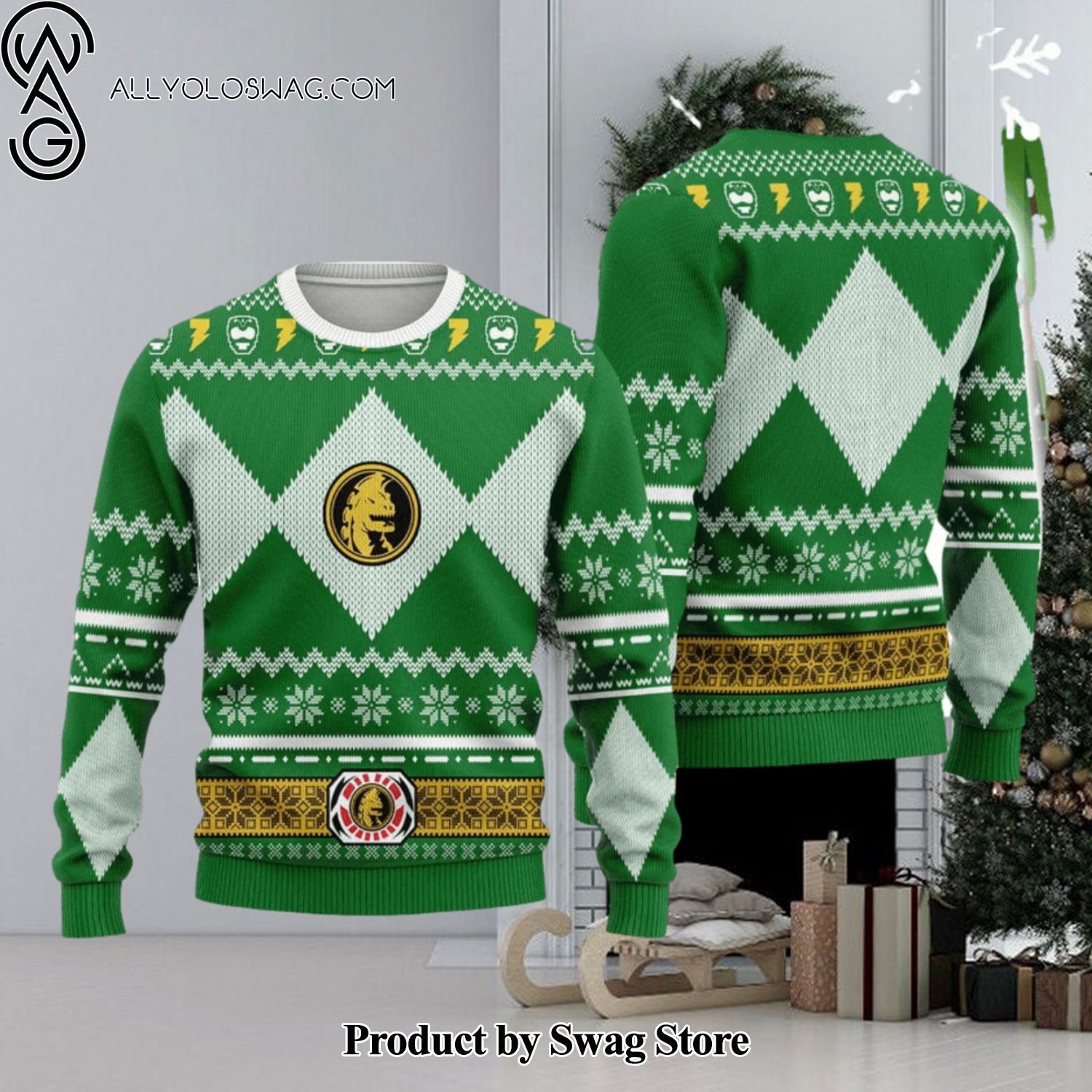 NOTE: [Top-selling] Merry Christmas Gifts Green Power Ranger Woolen Christmas Ugly Sweater