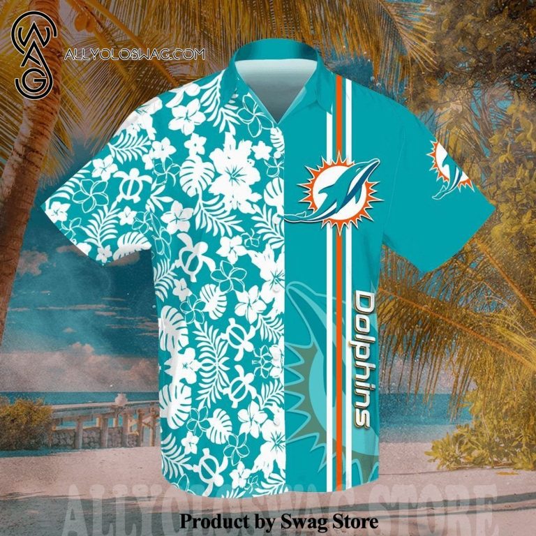 Hawaiian Shirt [Top-selling] Miami Dolphins All Over Print Flowery Short Sleeve Dress Shirt Hawaiian Summer Aloha Beach Shirt – Turquoise