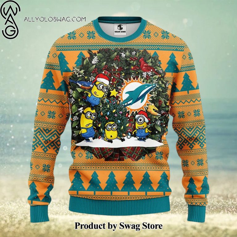 Some details about our [Top-selling] Miami Dolphins Minion Christmas Ugly Sweater
