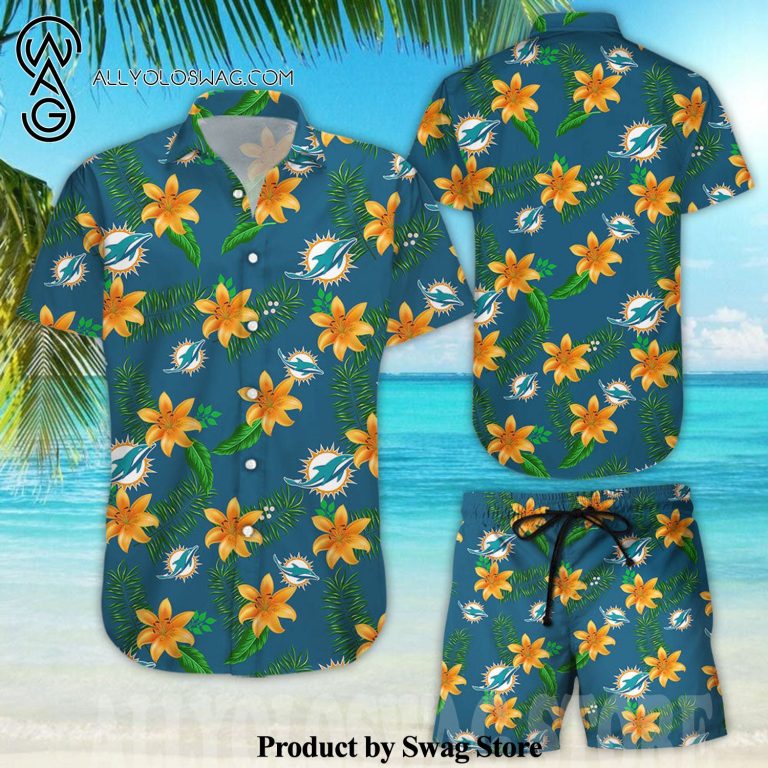 [Top-selling] Miami Dolphins NFL Hot Outfit Hawaiian Shirt was hand-tailored in the early days of fashion. This might happen in the comfort of one’s own home or at a custom tailor’s business. These stores immediately sprang up all across the islands, especially in plantation towns and Honolulu. Newly accessible fabrics from throughout the world were sold at dry goods stores, including printed silk from Japan, raw silk, batik, and rayon from the United States mainland, and cotton cloth for kimonos and yukatas.Hawaiian history had long been shaped by Asian immigrants, and apparel designs reflected this. Short- and long-sleeved shirts, as well as women’s skirts, were created using pre-printed textiles from China and Japan and were based on Asian clothing styles. These bright blouses and dresses were the forerunners of today’s Aloha attire. On the islands, we say “ono” to describe something that is pleasantly cool.