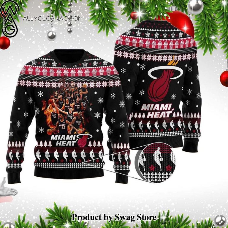 Some details about our [Top-selling] Miami Heat Basketball Team Woolen Christmas 3D Printed Ugly Christmas Sweater