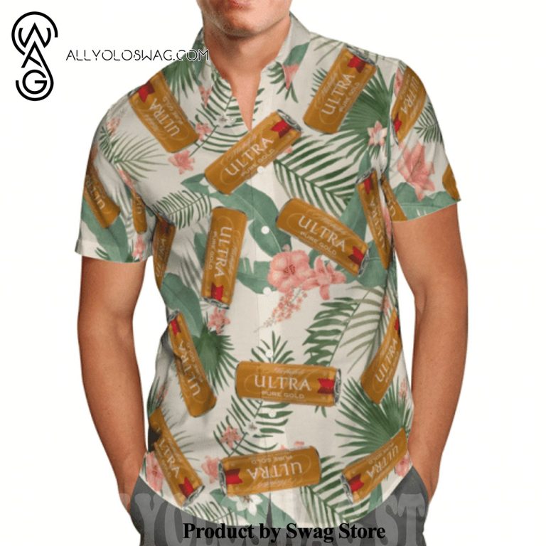 Some details about our product [Top-selling] Michelob Ultra Pure Gold Tropical Leafs All Over Print Hawaiian Shirt