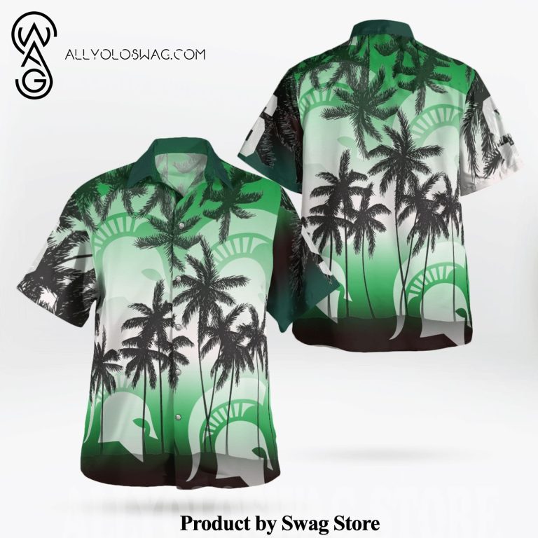 Hawaiian Shirt [Top-selling] Michigan State Spartans All Over Print Aloha Summer Beach Hawaiian Shirt – Green