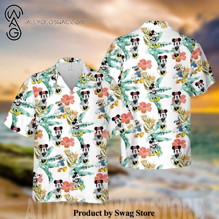 Some details about our product [Top-selling] Mickey Minnie And Donald Vacation Disney Cartoon Graphics Tropical Hibiscus All Over Print Hawaiian Shirt – White