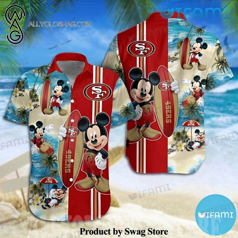 [Top-selling] Mickey Mouse 49ers San Francisco 49ers Gift Hawaiian Shirt was hand-tailored in the early days of fashion. This might happen in the comfort of one’s own home or at a custom tailor’s business. These stores immediately sprang up all across the islands, especially in plantation towns and Honolulu. Newly accessible fabrics from throughout the world were sold at dry goods stores, including printed silk from Japan, raw silk, batik, and rayon from the United States mainland, and cotton cloth for kimonos and yukatas.Hawaiian history had long been shaped by Asian immigrants, and apparel designs reflected this. Short- and long-sleeved shirts, as well as women’s skirts, were created using pre-printed textiles from China and Japan and were based on Asian clothing styles. These bright blouses and dresses were the forerunners of today’s Aloha attire. On the islands, we say “ono” to describe something that is pleasantly cool.