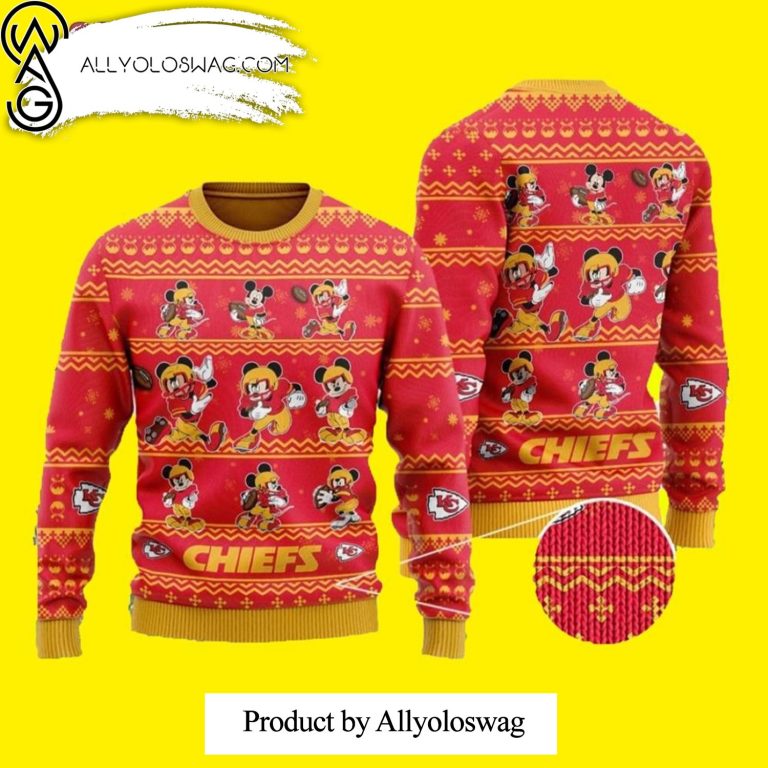 NOTE: [Top-selling] Mickey Mouse Kansas City Chiefs Customs Ugly Christmas Wool Knitted Sweater