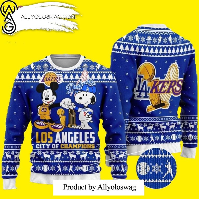 Some details about our [Top-selling] Mickey Mouse Los Angeles Lakers And Snoopy Lakers Customs Ugly Christmas Sweater