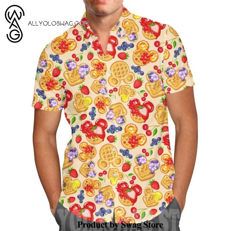 Some details about our product [Top-selling] Mickey Mouse Strawberry Waffles Disney Cartoon Graphics All Over Print Hawaiian Shirt